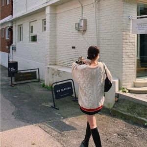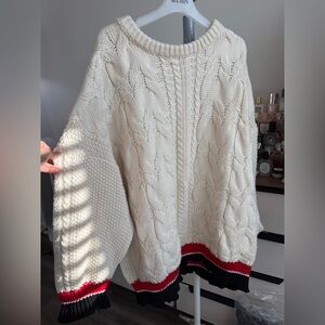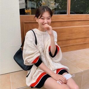 Cozy Knit Sweater with Red and Black Accents
