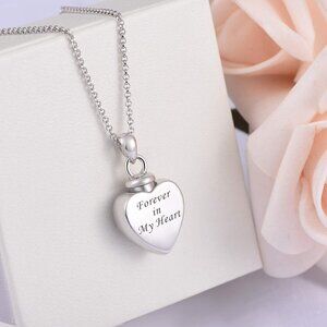925 Sterling Silver Heart Cremation Jewelry Keepsake Urn Necklace for ashes : Fo