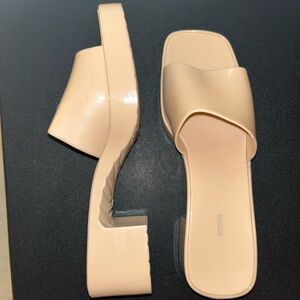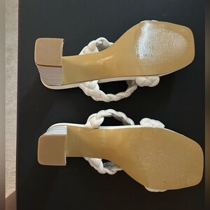 Stylish white braided heeled sandals. Perfect for any occasion. Snakeskin heel with plastic still on the bottom. Never worn, size UK41, US 9.5