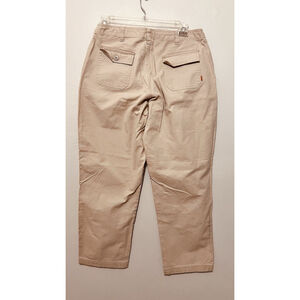 The Oobe Women's 80s Vintage Balloon Leg Wide Oversized Pants in size 14 are a stylish and versatile addition to any wardrobe. Made from comfortable cotton twill fabric in a neutral beige color, these mid-rise pants feature a flat front and straight leg style. With a zip and button closure, along with belt loops and pockets, they are perfect for casual, workwear, or business occasions. The oversized fit and vintage theme make these pants a unique and on-trend choice for the modern minimalist. Perfect for the summer, fall, and spring seasons, these pants are a sustainable and comfortable option for everyday wear.