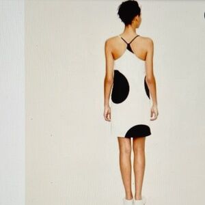 Stylish mini dress with a chic black and white design. Features a flattering silhouette and thin straps. Perfect for any occasion.