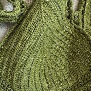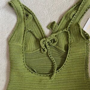Torn by Ronny Kobo Madi Dress in metallic green sexy beach crochet midi sz m