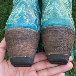 Stylish turquoise boots with intricate embroidery. Perfect for a bold look.