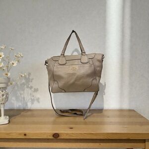 Features: It is a shoulder bag with a pebbled leather exterior and gold-toned hardware, including a Coach logo on the front.