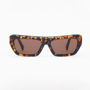 retro, mod, handmade, 00s, 10s, 2010s, brown, blue, tort, speckled, mod, mid century, new wave, futuristic, geometric, statement, rare, designer