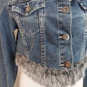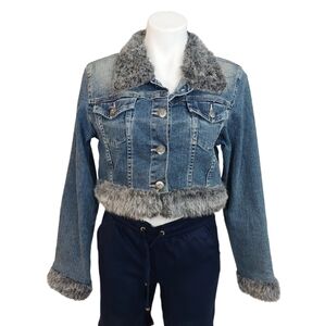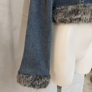 Americana Blues Denim Crop Jean Jacket Faux Fur Details Size L