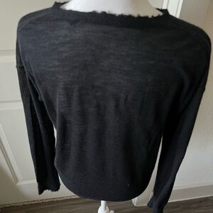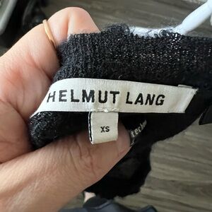 This Helmut Lang sweater in classic black features a crew neck design and a subtly textured finish for added visual interest. Its long sleeves and relaxed fit ensure comfort and style, making it a versatile addition to any wardrobe.
