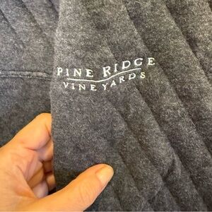 It does have the embroidery of a vineyard on the arm. Wash wear, but overall good condition. Perfect item if you need a light jacket for chores, gardening, pruning grapes? Interior pockets. Exterior chest and side pockets. Overall a fantastic quilted shacket.