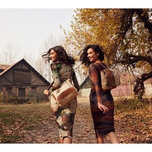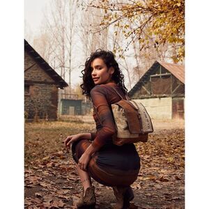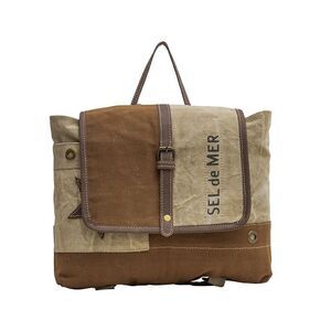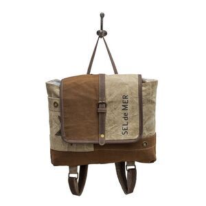 Myra Bag Handmade Tahini Backpack Upcycled Canvas & Cowhide Leather