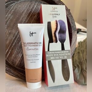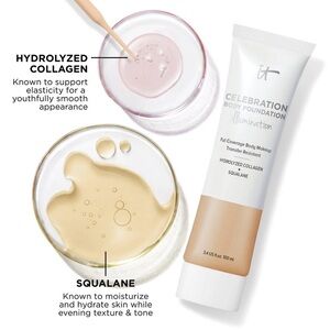 Discover IT® Celebration Body Foundation Illumination delivers the same skin-perfecting coverage you expect from IT Cosmetics—now in a transfer-resistant, undetectable body makeup that goes on smoothly and instantly camouflages top skin concerns including: