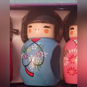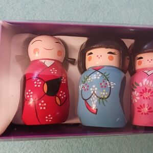 Set is new and sealed. But, box has damage and one Kokeshi has slight paint damage. See pics..