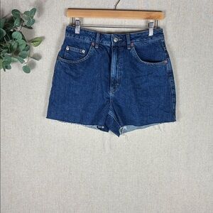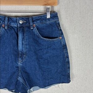 Topshop > A-Line Blue Denim High Rise Mom Shorts 6