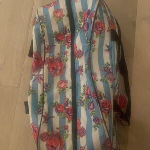 🎀 This Betsey Johnson travel bag showcases a lively floral design with blue and pink hues, perfect for your next getaway. Its durable construction and cheerful pattern make it a standout choice for stylish travelers. preloved euc