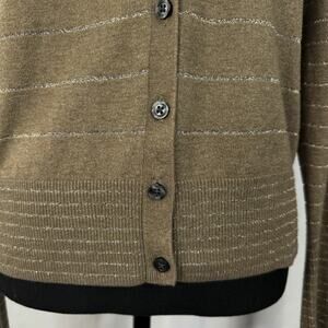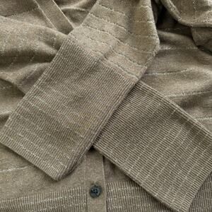 American Eagle Women’s Chamoisee Brown XL Cardigan. 5 button closure. Lightweight. Silver metallic thread pinstripe. Banded bottom. Machine wash cold.