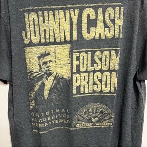 Showcase your love for music with this Johnny Cash Folsom Prison graphic tee. The charcoal color adds a classic touch to your casual wardrobe.