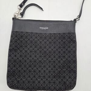 Coach New York Signature Op Art Black Gray Crossbody Canvas Leather Trim Slim