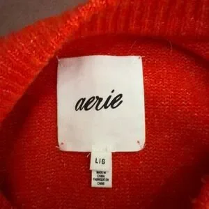 Keywords: Aerie sweater, red sweater, oversized sweater, crew neck sweater, long sleeve sweater, knit sweater, womens sweater, casual sweater, large sweater, red knitwear, pullover sweater, cozy sweater, relaxed fit sweater, aerie knit