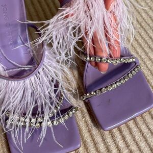 FINAL SALE - REVOLVE song of style Purple Feathered Sandals with Rhinestones