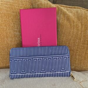 Elegant silver wallet by Jimmy Choo. Features bold embossed logo. Perfect for stylish card organization. Comes with box, cards and dusty.