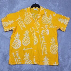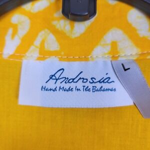 Androsia Bahamas Shirt Mens Large Yellow Pineapple Print Button Up Vintage