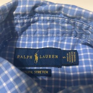 Gently Preowned Ralph Lauren Boy's Plaid Blue Gingham Dress Shirt Size 5 Button Down Long Sleeve Shirt.