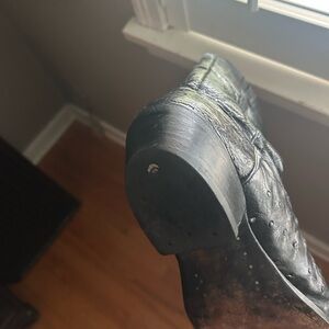 Experience the rugged elegance of these genuine black ostrich leather western boots. Crafted for style and durability, they are perfect for any occasion. these boots have a patchwork ostrich top. The heels might need to be redone at some point, but they’re great to wear right now. The souls are pretty good. The skin is an excellent condition.