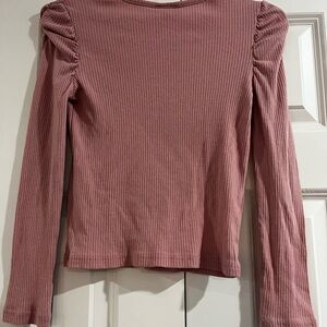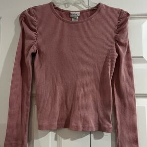 Chic dusty pink blouse with ribbed texture. Long sleeves and elegant design. Princess shoulder sleeves.