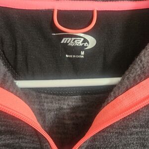 MTA sport fleece long sleeve sweater zip jacket medium dark charcoal grey pink