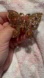 Elegant butterfly brooch with gold and orange accents. Intricate design with sparkling details.