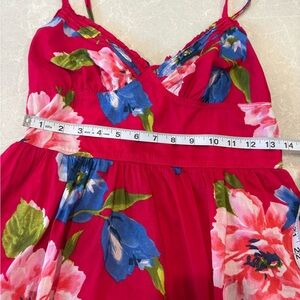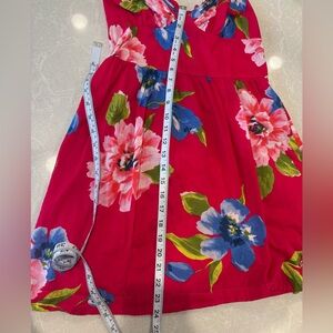 Bright red dress with floral accents. Perfect for casual outings. Great condition.