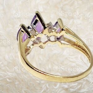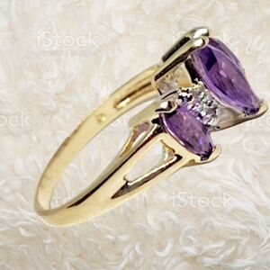 Solid 14k Gold Ring with Marquis Cut Amethyst Gemstones and Round Cut Diamonds