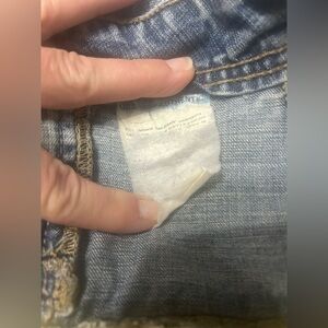 This skirt has been in my closet since college. 😜 It’s been in there so long it’s cool again but too short for me. Size is a 30 with no stretch. It has really unique turquoise accents on the belt loops. Inside tag writing is worn away. She had lots of fun in her day and ready for some more.