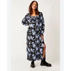 Puff sleeve midi dress in a soft floral with an organza overlay