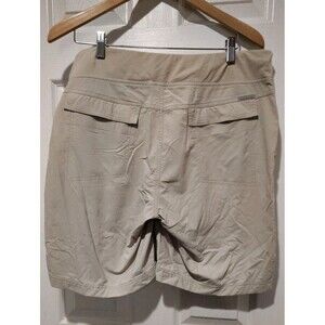These Royal Robbins shorts for women in size Large offer a stylish and comfortable option for various occasions. The pull-on design and nylon-spandex blend fabric provide ease of wear and flexibility. The khaki beige color and solid pattern make them versatile for travel, activewear, or casual outings. With a mid-rise fit and 10-inch inseam, these shorts feature a flat front and are machine washable for convenient care. Perfect for outdoor activities like walking, beach trips, or hiking, these shorts combine practicality with a classic chino style.