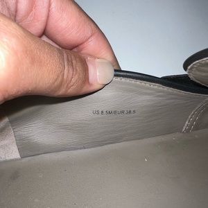 Stylish snake print slip-on sneakers. Features black and gray tones. Comfortable and chic design.
