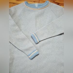 Vintage 70s Sears Shetland Wool Blue Ivory Sweater Dress Knit S / M