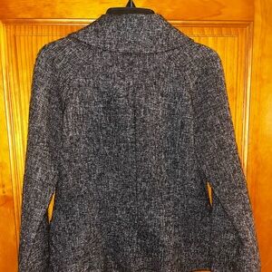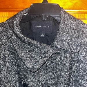 Chic charcoal tweed pea coat by Banana Republic. Features a stylish double-breasted design. Ideal for a polished look.