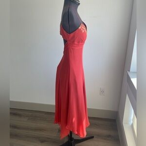 Chic scarlet silk gown by Laundry by Shelli Segal. Ideal for elegant events.
