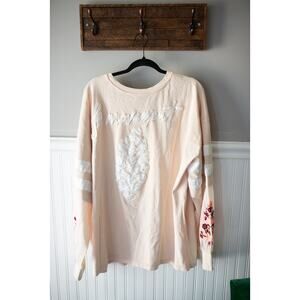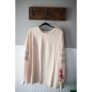Take your to-from style to the next level with this oversized long-sleeve layer, featured in a twofer design with a floral-embroidered mesh underlay, striped accents, and a big buti back graphic.