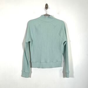 The North Face Womens Boxy Cropped Waffle Knit Mock Neck Top Green Size XS NWT