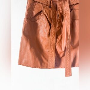 NWT Free People Brown Faux Leather Belted Mini Skirt