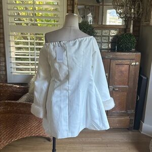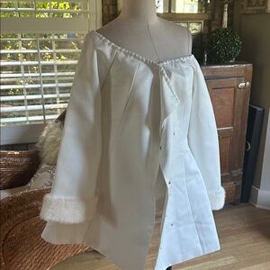 AKIRA WHITE OFF THE SHOULDER FAUX FUR CUFF BLAZER JACKET XL NEW