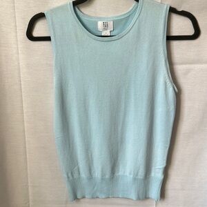 Apt.9 Sweater and Vest Soft and comfy, Sky-Baby Blue set. 71% Rayon, 29% Polyester Vest -Pit to pit 15” Sweater Pit to pit 17 1/2” Length 21” Sleeve inseam 17” Take along on a cruise or vacation. Snug fitting ribbed bottom waist and ribbed bottom sleeves. CHECK PHOTOS Some pilling, small spot on vest