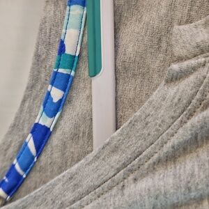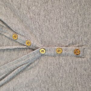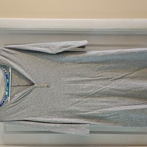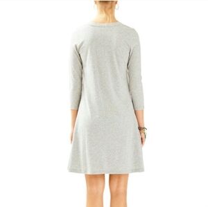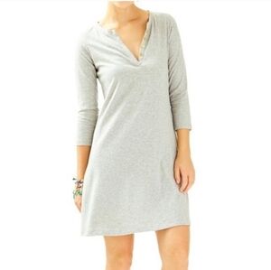 Cute and comfortable gray dress featuring gold button accents and signature Lilly design seam. Can wear casually or dress it up! Excellent condition!