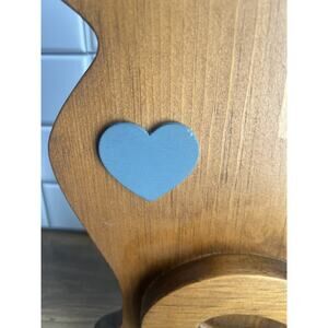 The vintage wooden cat tabletop decor with a blue heart is a charming and unique piece of home decor. Crafted from wood, this cat figurine exudes a rustic and antique feel. The addition of a blue heart adds a playful and whimsical touch, making it a delightful addition to any tabletop or shelf. Perfect for cat lovers or those who appreciate vintage aesthetics, this piece is sure to bring a touch of character and charm to any space.