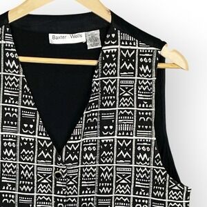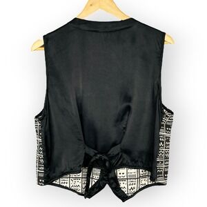 VTG 90s Baxter Wells Woven Tribal Print Vest Womens L Retro Satin Lined Tie Back