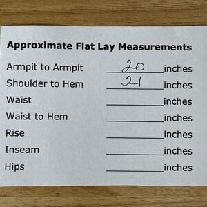 See photos for details and approximate flat-lay measurements (in inches).