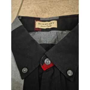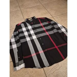 Burberry London England Men's Check Cotton Shirt Long Sleeves Black Red Gray