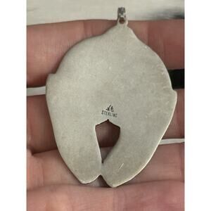 Huge Native American Sterling Silver Indian Skull Chief Headdress Pendant Signed