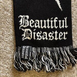 Beautiful Disaster Skull Bow Design and Lightning Black Knit Scarf with Fringe